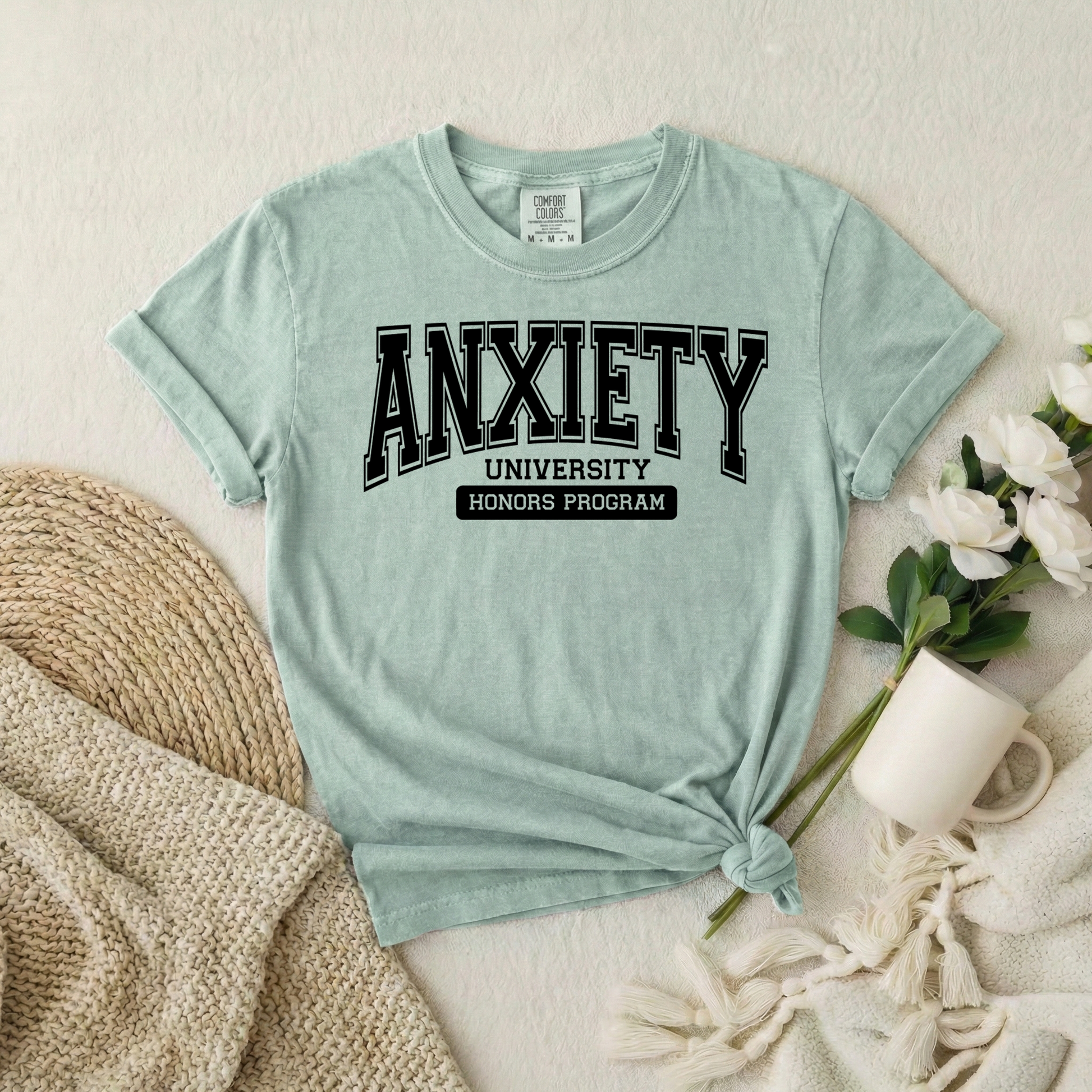 A little humor for the overthinkers 🤍 This “Anxiety University – Honors Program” graphic tee is the perfect relatable statement piece. Relaxed unisex fit, it’s designed for all-day comfort while keeping your style effortlessly cool.