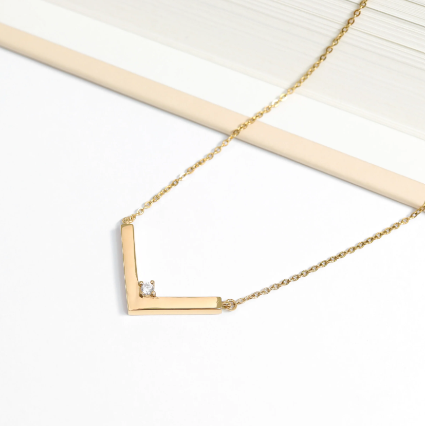 CZ V-Shaped Pendant Necklace