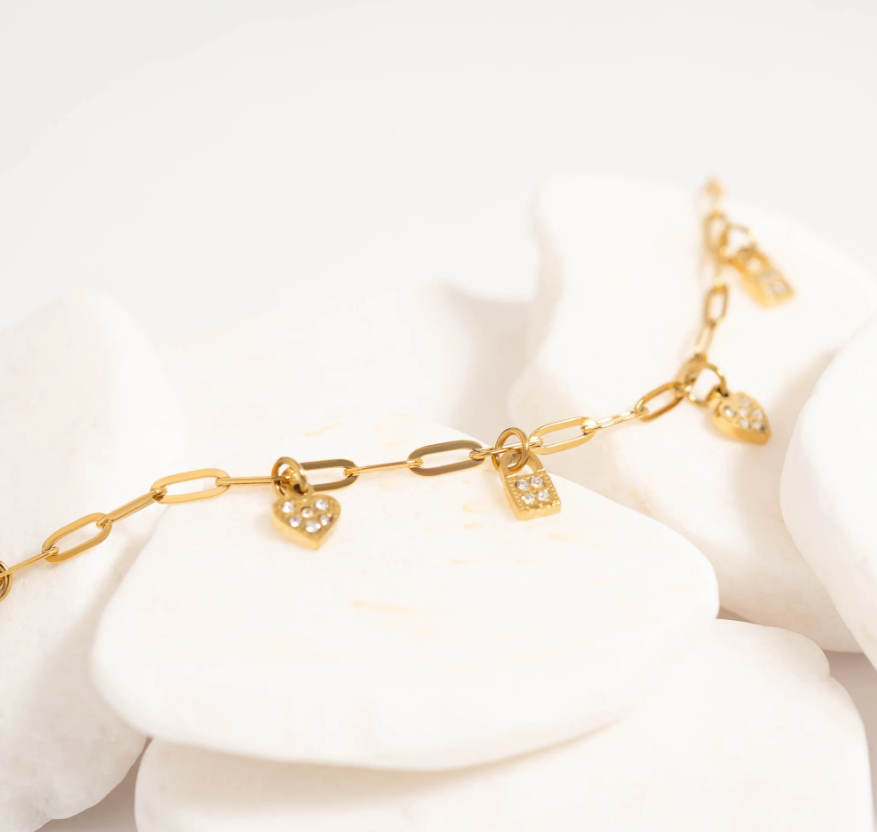 This Charm Link Bracelet features a sleek chain design accented with dainty dangling charms for a subtle yet eye-catching look. Crafted from durable stainless steel and finished in gold-plated or silver-tone, this bracelet is lightweight, tarnish-resistant, and made for everyday wear.