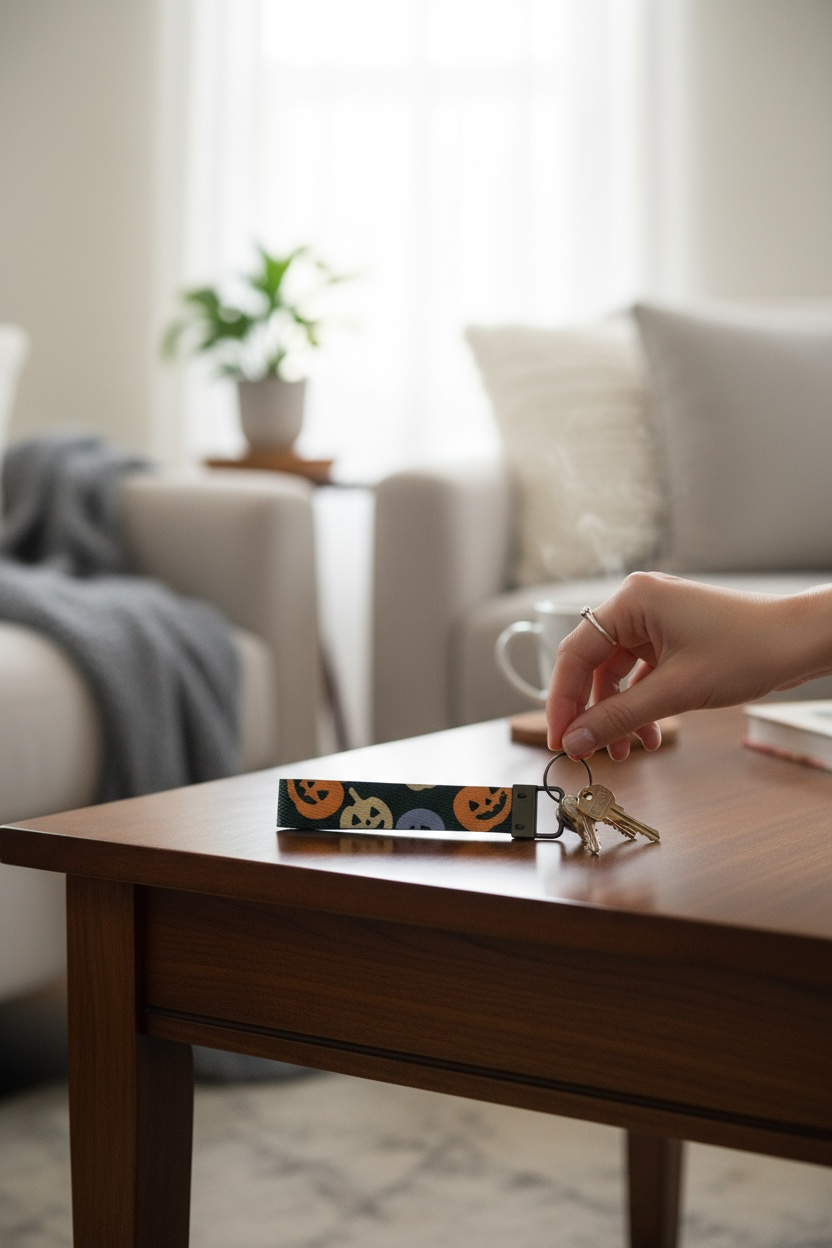 Jack-O’-Lantern Wristlet Keychain – Spooky Cute Halloween Key Fob