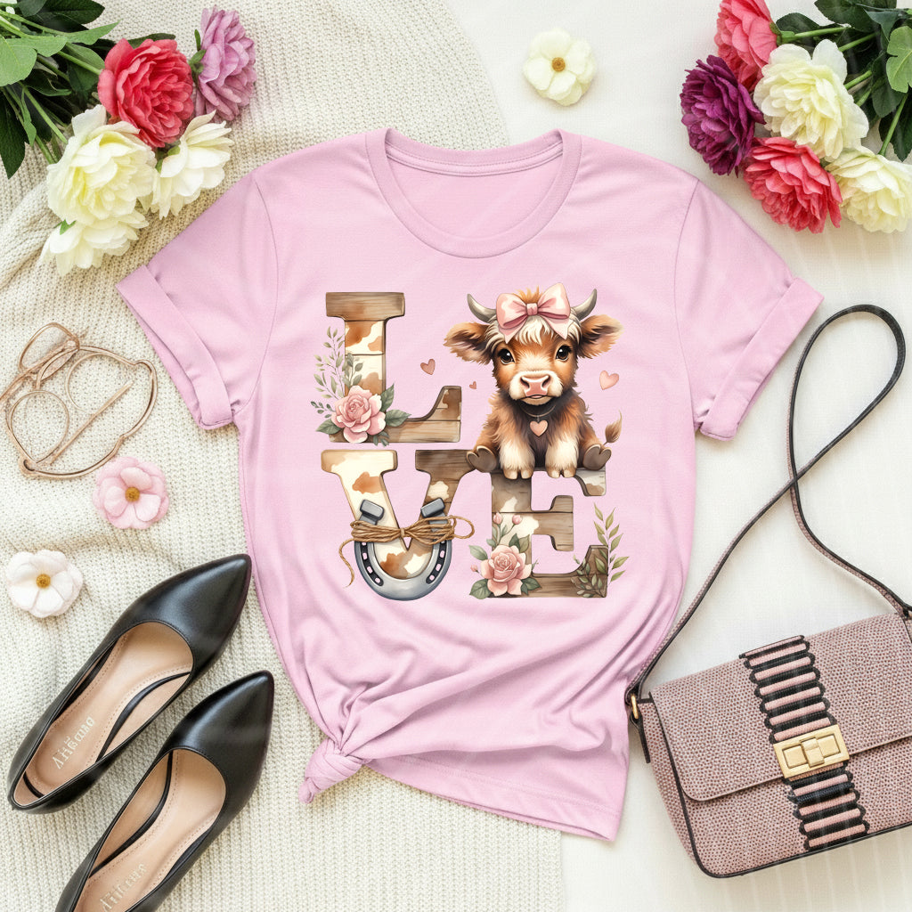 LOVE Highland Cow Shirt – Cute Farm Valentine Graphic Tee