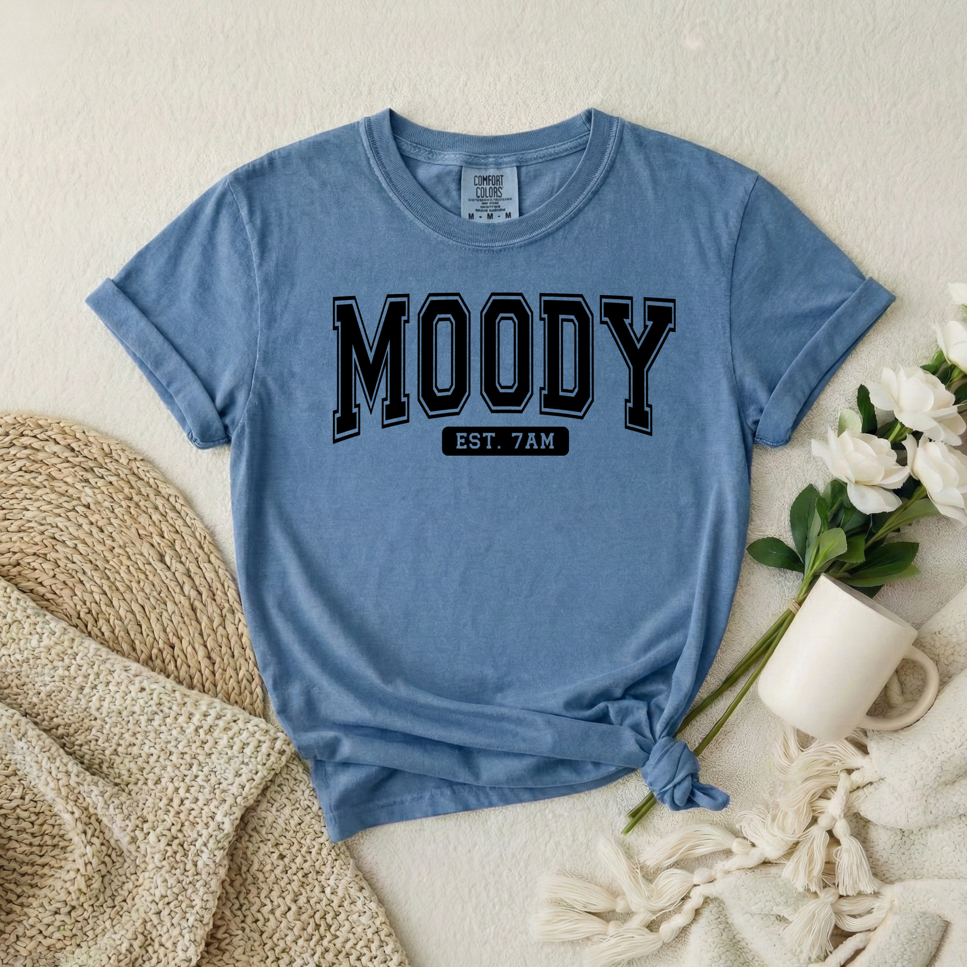 Not a morning person? Same. 😴 This “Moody EST. 7AM” graphic tee is perfect for those early mornings when the attitude kicks in before the coffee does. Features a relaxed unisex fit and that vintage-washed feel everyone loves.