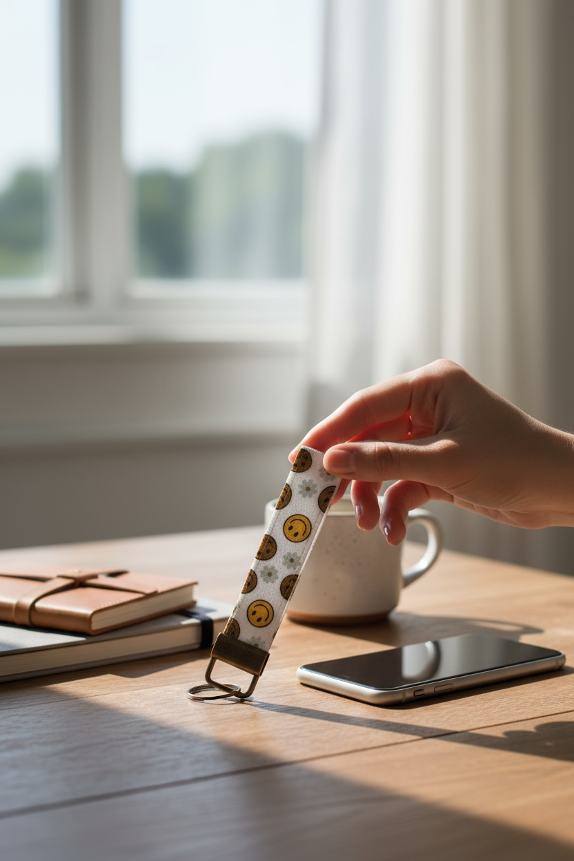 Add a pop of positivity to your keys or bag with this fun, feel-good wristlet keychain that keeps your essentials close and your mood lifted.